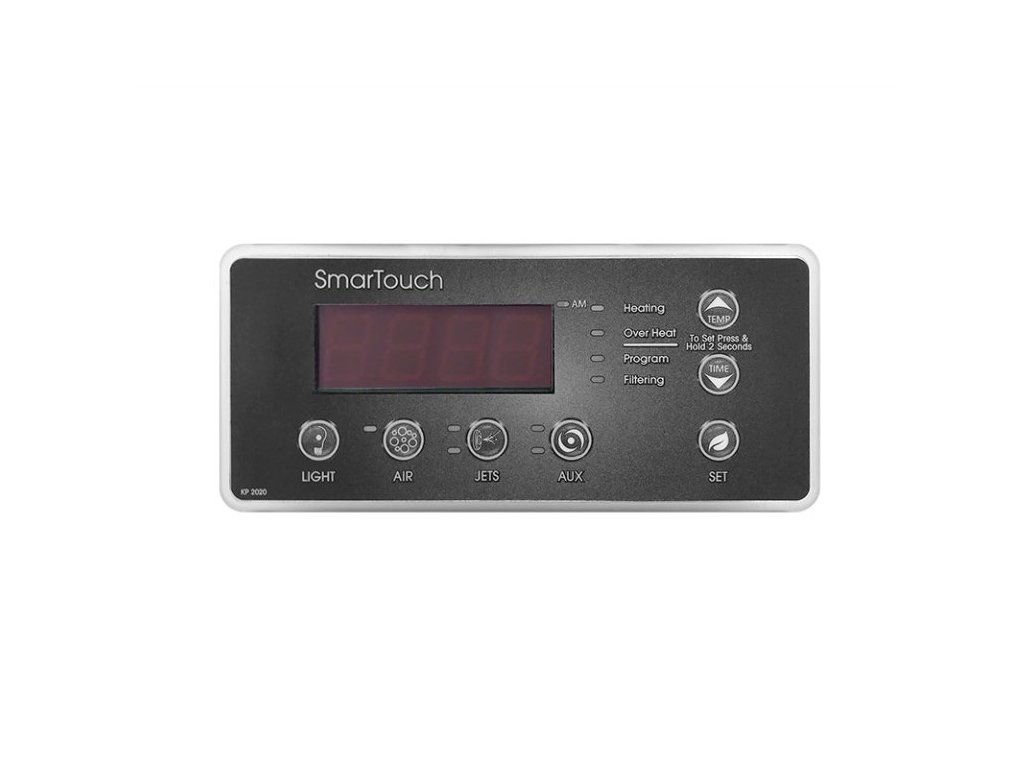 | Tlačítka: | Up (Temp), Down (Time), Light, Air, Jets, Aux, Set |