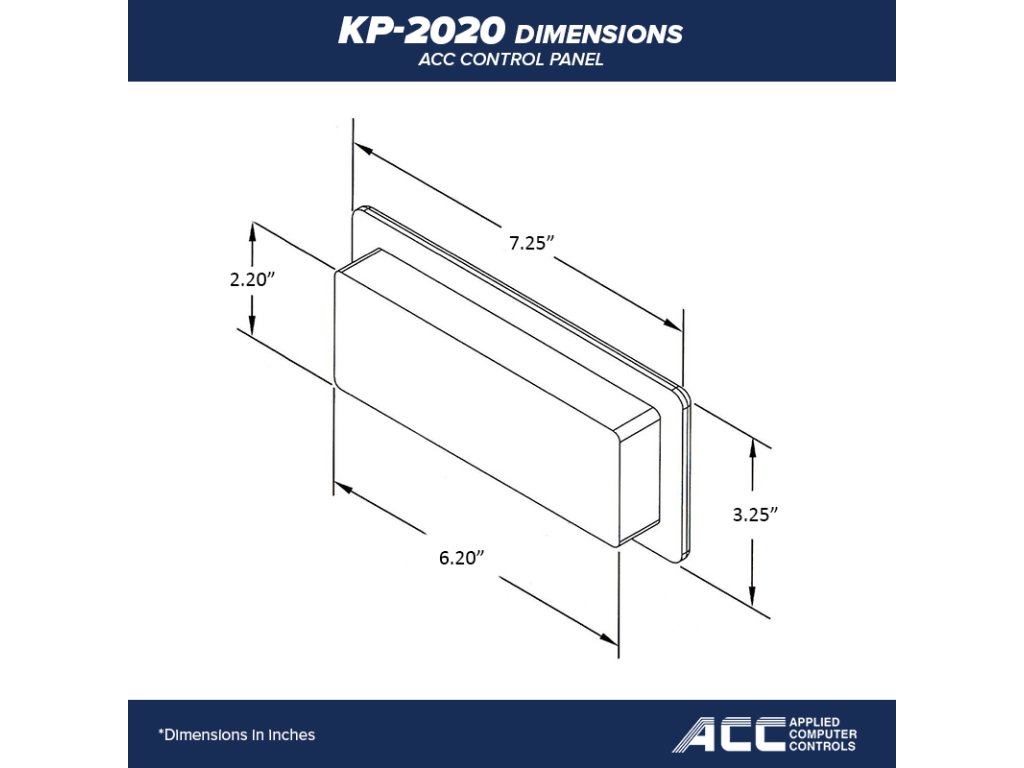 Ovládací panel SmarTouch Digital od značky ACC, model KP-2020 môžete ovládať pomocou 7 tlačidiel. Dokáže pracovať a je plne kompatibilný s riadiacimi systémami SMTD 2000 a SMTD 3000.