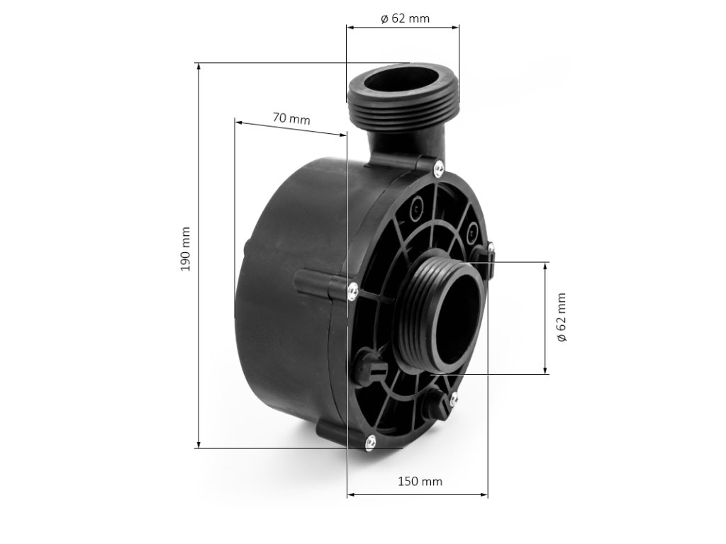 - Priemer napojenia vstupu i výstupu je xx mm vonkajší závit pre pripojenie príruby (nie je súčasťou balenia)