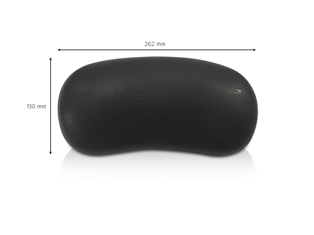 Polyuretánový podhlavník, tmavo šedej až čiernej farby. Univerzálne použitie.
