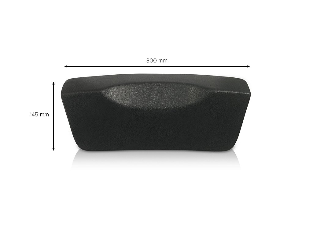Polyuretánový podhlavník, tmavo šedej až čiernej farby. Univerzálne použitie.