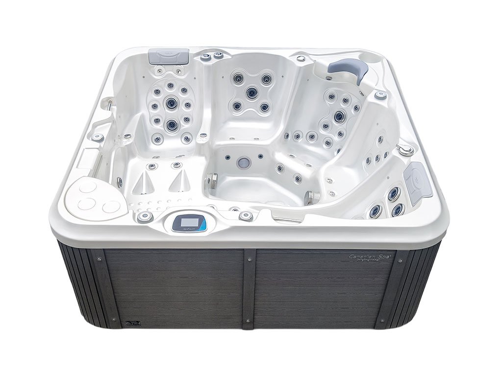 Priestranná vírivka pre 5 osôb s rozmermi 230×216×92 cm, ergonomické ležanie aj sedenie, bohaté osadenie trysiek. Ovládanie Balboa SpaTouch2, 2× masážne čerpadlo 2,2 kW, cirkulácia 0,2 kW, blower 700 W, ozón CANZONE New Generation 2024. Zánovná, plne funkčná, po servise.