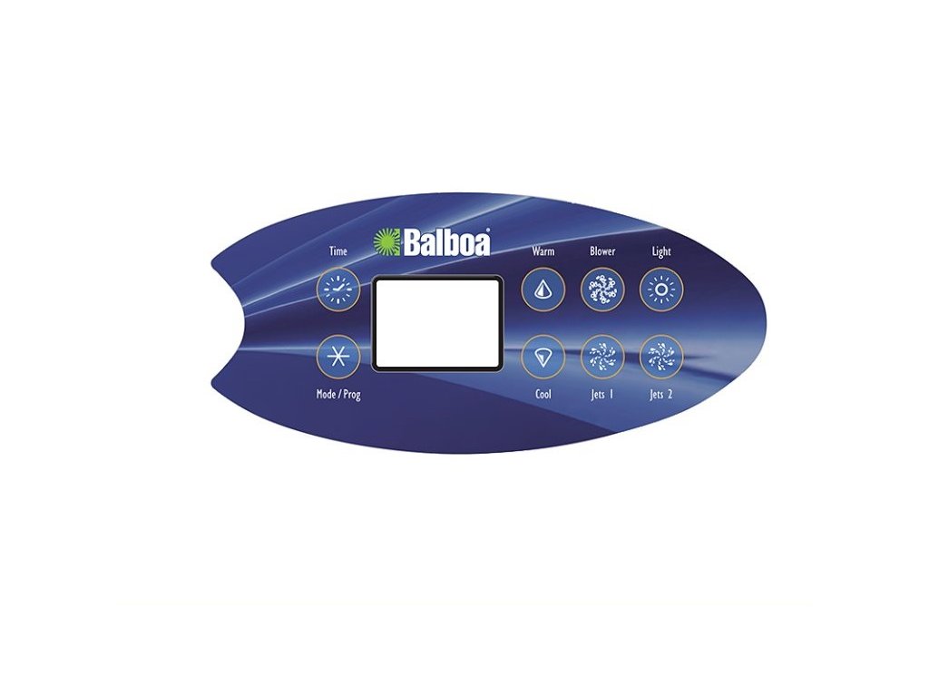 | Tlačítka: | Time, Mode, Warm, Cool, Blower, Jets 1, Light, Jets 2 |